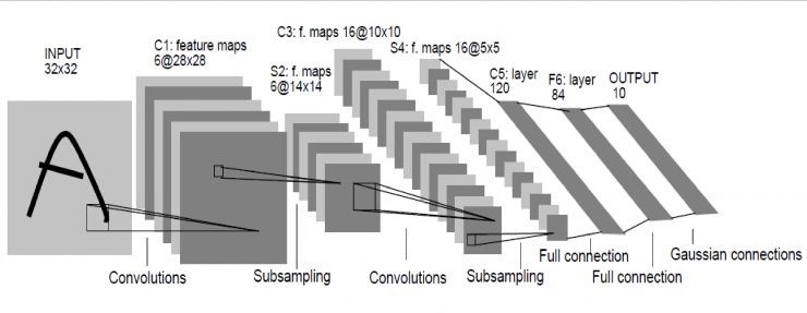 Le顾名思义就是指人工智能领域的大牛Lecun。这个网络是深度学习网络的最初原型,因为之前的网络都比较浅,它较深的。LeNet在98年就发明出来了,当时Lecun在AT&T的实验室,他用这一网络进行字母识别,达到了非常好的效果。